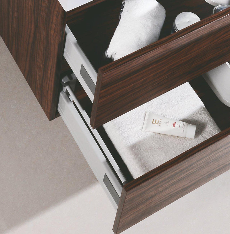 The Bliss is one of the most elegant modern Bathroom Vanities around. This 40 Inch model comes with a reinforced Acrylic sink, Marine Wood Veneer Constructed Console that is fully moister and water proof, with high quality European DTC Hardware, that provides smooth soft-closing operation drawers.