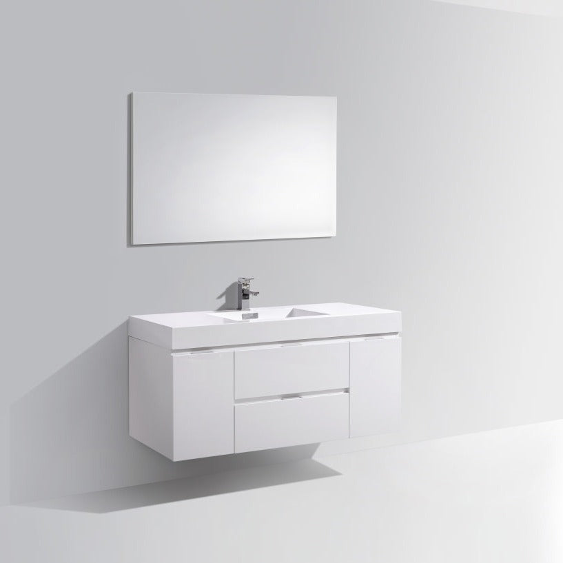 KubeBath Bliss 48" High Gloss White Wall Mount Modern Bathroom Vanity BSL48-GW