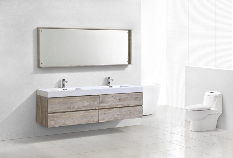 Bliss 80 in. Double Sink Wall Mount Modern Bathroom Vanity - Nature Wood