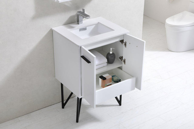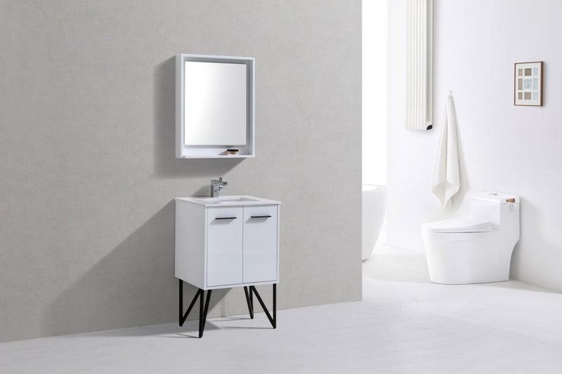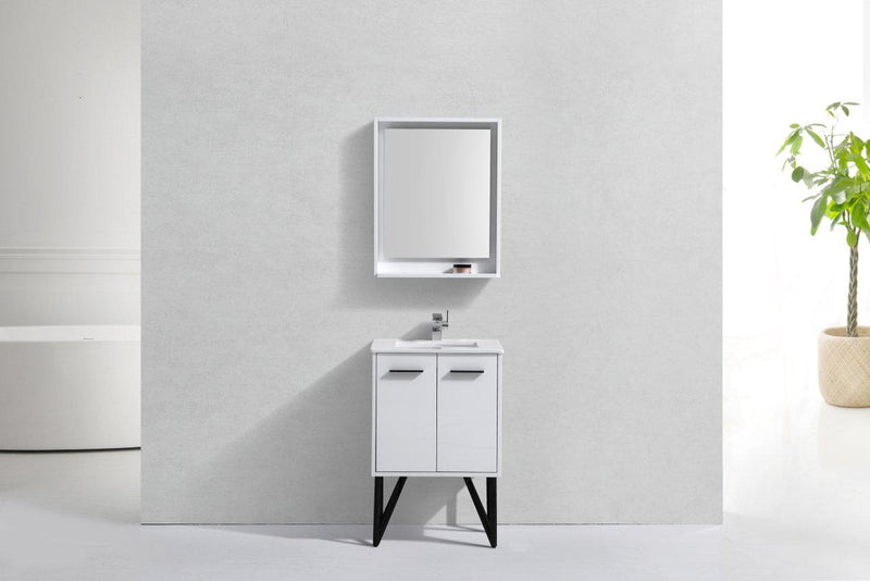 Bosco 24 in. Modern Bathroom Vanity w/ White Countertop and Matching Mirror - High Gloss White