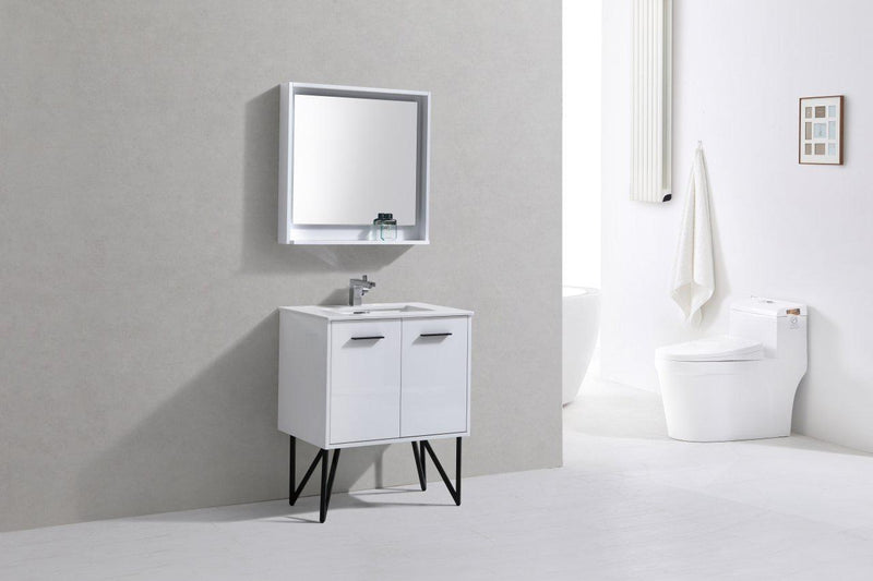 Bosco 30 in. Modern Bathroom Vanity w/ White Countertop and Matching Mirror - High Gloss White