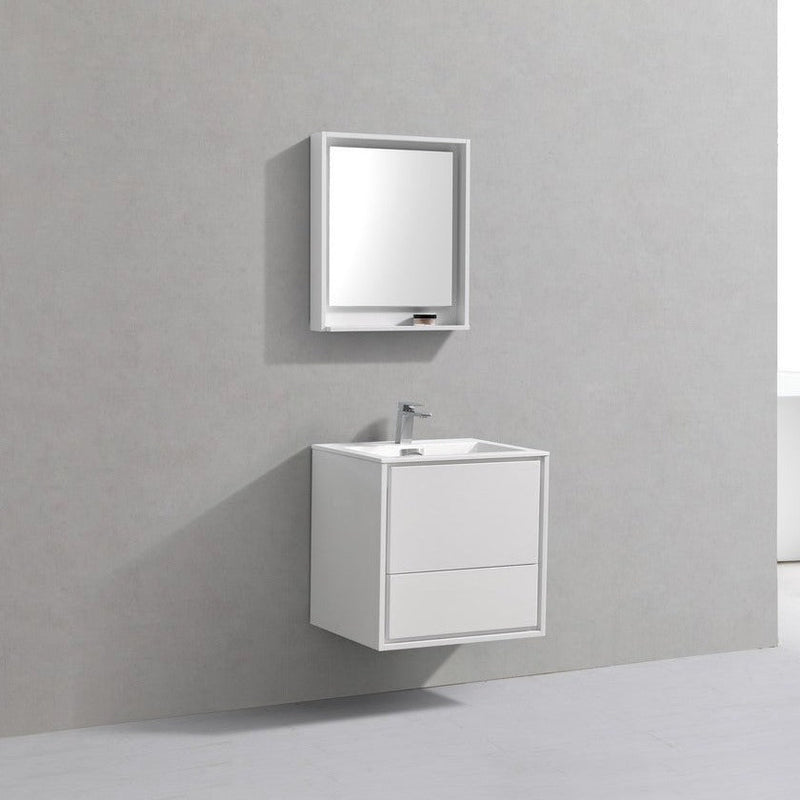 KubeBath DeLusso 24" High Glossy White Wall Mount Modern Bathroom Vanity DL24-GW