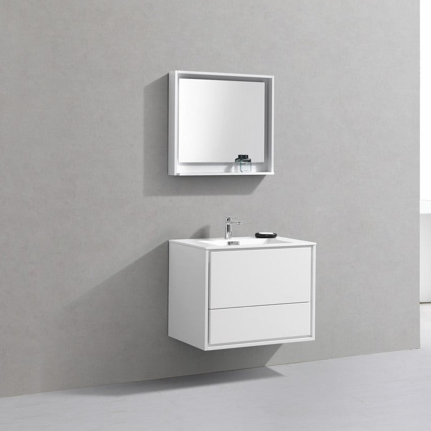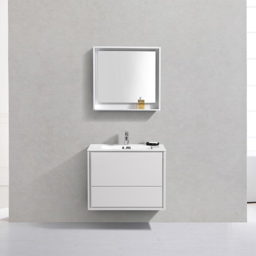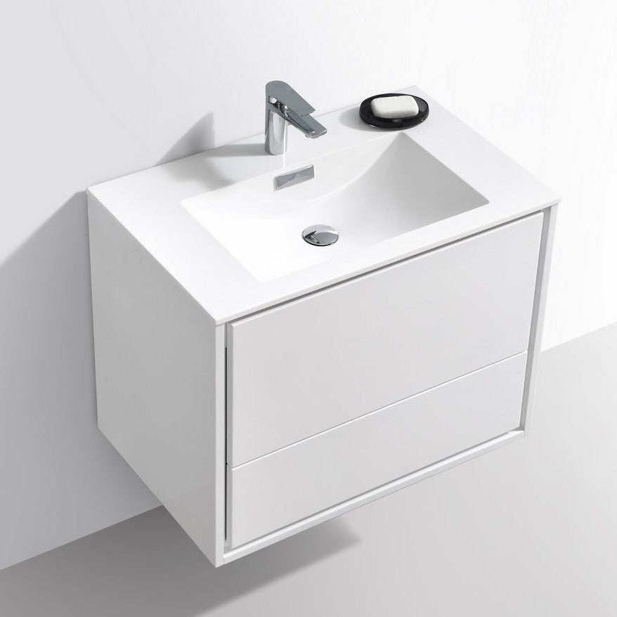 KubeBath DeLusso 30" High Glossy White Wall Mount Modern Bathroom Vanity DL30-GW
