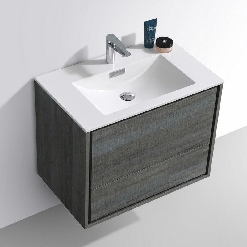 KubeBath DeLusso 30" Ocean Gray Wall Mount Modern Bathroom Vanity DL30-BE