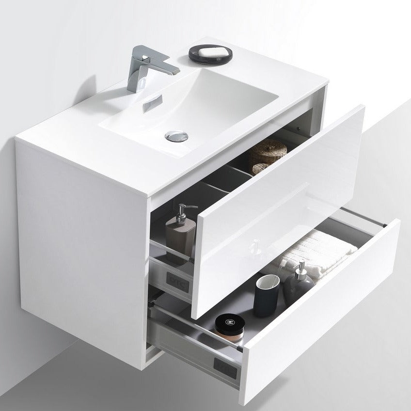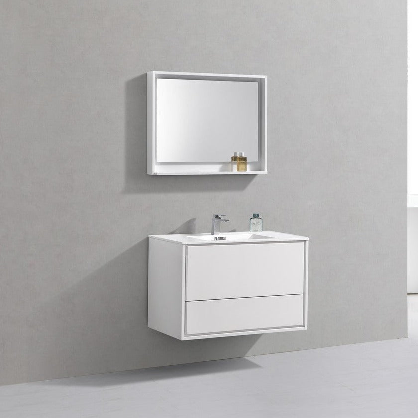 KubeBath DeLusso 36" High Glossy White Wall Mount Modern Bathroom Vanity DL36-GW