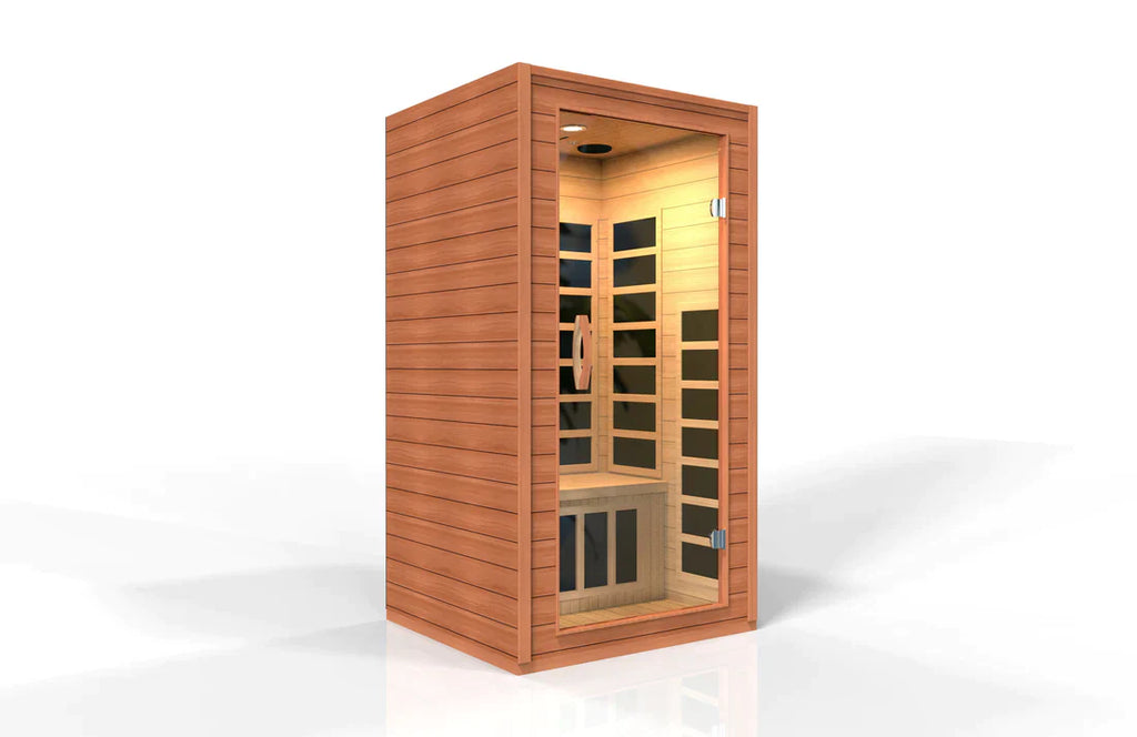 Dynamic Saunas are constructed of environmentally-friendly Canadian Hemlock wood planks. Our saunas feature energy efficient Low EMF FAR infrared heating panels that help relax and rejuvenate the body. Dynamic Saunas can be installed on carpet or any indoor location including basements, master bath, walk in closet or can also be added it to a fitness room.