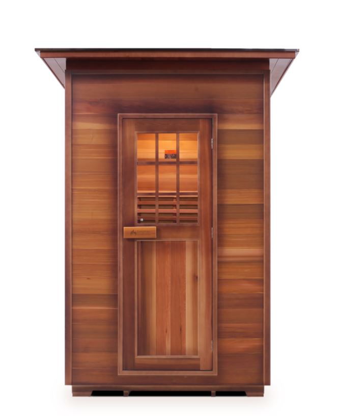 Enlighten MoonLight 2 person indoor sauna is a great compact sauna designed with your convenience in mind. It looks great from the inside and outside. It is comfortable for 2 persons and it features Harvia electric heaters to bring about heat and sweat for all those well-researched health benefits saunas provide.