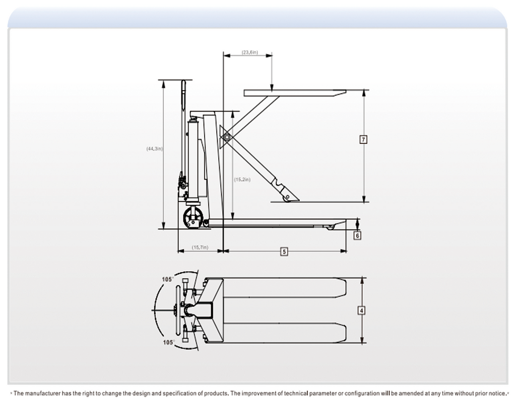 Eoslift USA Superior (Industrial Grade) electric scissor lift pallet jack is constructed with German engineered reinforced steel structure, and craftsmanship through precise Robotic welding. Including single or double cast pump with durable valve cartridge, 2200 lbs. weight capacity., Fork-27 in. x 46 in., Polyurethane Wheels, Steel Hubs, Padded Handles, 31.5 in Raised Height ,3.35 in. Lowered Height. 3-Years Limited Warranty