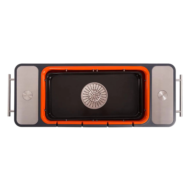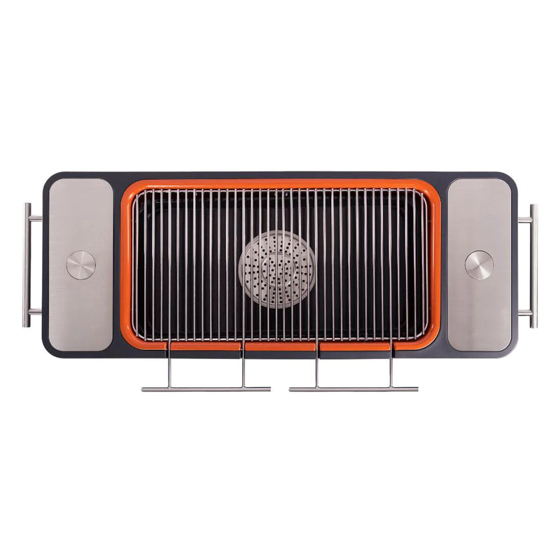 With the patent pending Rotiscope Technology rotisserie system, you get a built-in rotisserie that can be accessed by pressing and popping out the rotisserie support poles on the top of the grill and inserting the stowed rotisserie rod into them. The rotisserie includes ClipLock Forks that have a jaw-like design for keeping your food securely in place no matter if you are roasting a small chicken or a suckling pig.