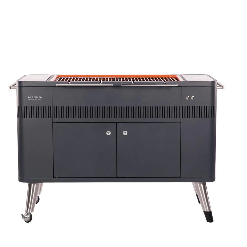 The Everdure HUB charcoal grill by Heston Blumenthal is great for outdoor grilling anywhere you want to be. The HUB series grills are made of powder-coated steel and have a Fast Flame Ignition System that, at the touch of a button, uses a heating element to ignite your charcoal and has you ready to start grilling in roughly 10 minutes.