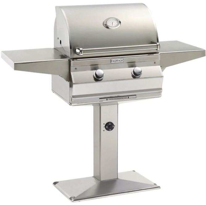 The Fire Magic Choice C430S 24-Inch Propane Gas Grill With Analog Thermometer On Patio Post ( C430S-RT1P-P6) by Fire Magic Grills. Known for crafting American-made premium grills for over 75 years, Fire Magic is dedicated to providing you with a quality outdoor cooking experience. Choice Series grills are the most affordable line that Fire Magic offers, featuring superior design and materials inside Aurora-style housing.