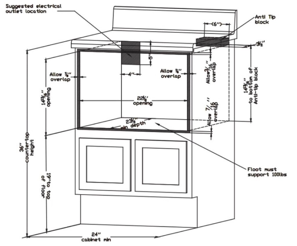 • Cutout size: 22-1/8" W x 23.5" D x 14-13/16" H