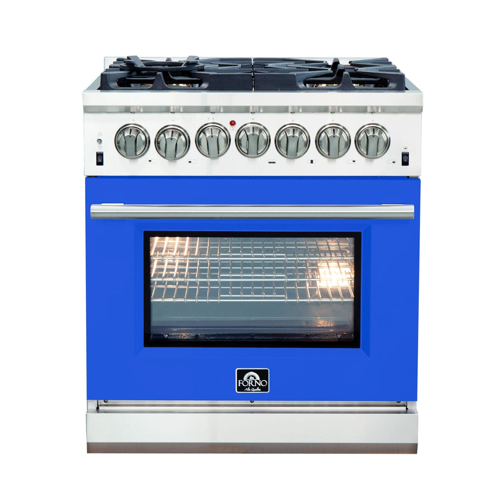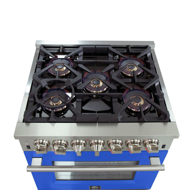 Forno 30" Capriasca Dual Fuel Range with 5 Gas Burners and 240v Electric Oven in Stainless Steel with Blue Door (FFSGS6187-30BLU)