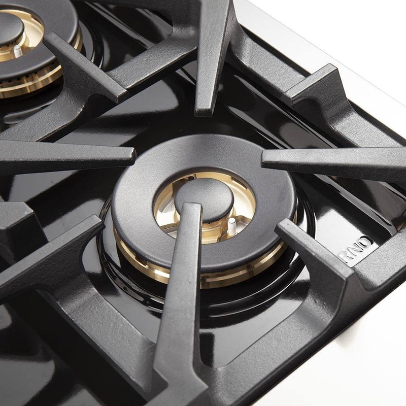 Brass Burners - Elegant brass burners effectively channel heat for desired cooking results.