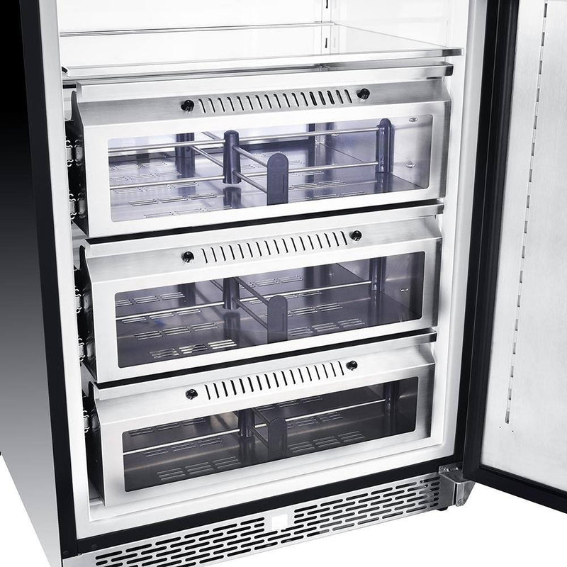 • The 304 stainless steel drawers with front glass panels give a modern and sleek look. The drawers also feature side rubber stoppers to ensure they stay securely shut.