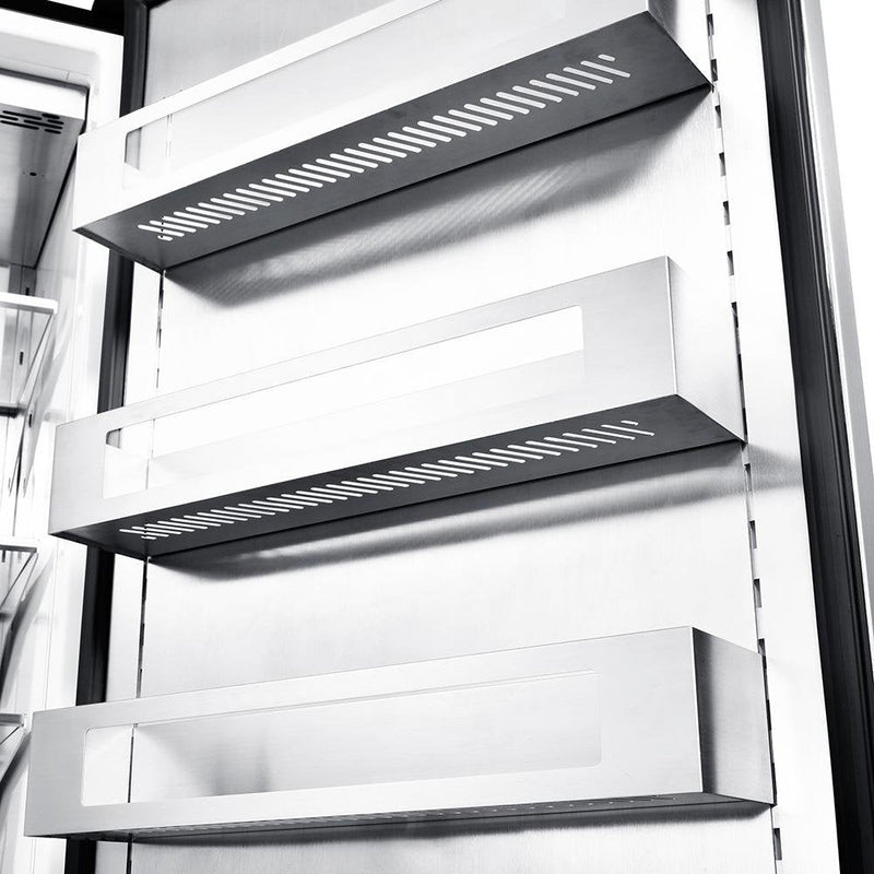 • The 204 stainless steel outer door construction provides superior strength and durability. The 304 stainless steel inner door panel and adjustable door baskets with front glass panel make this refrigerator extremely easy to access and keep items neatly organized.