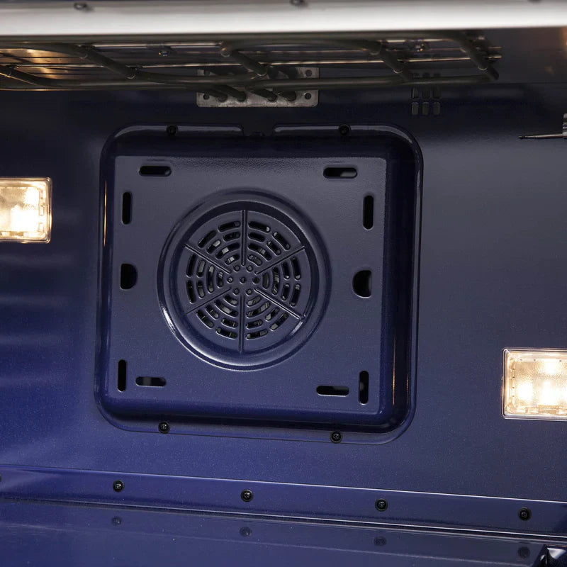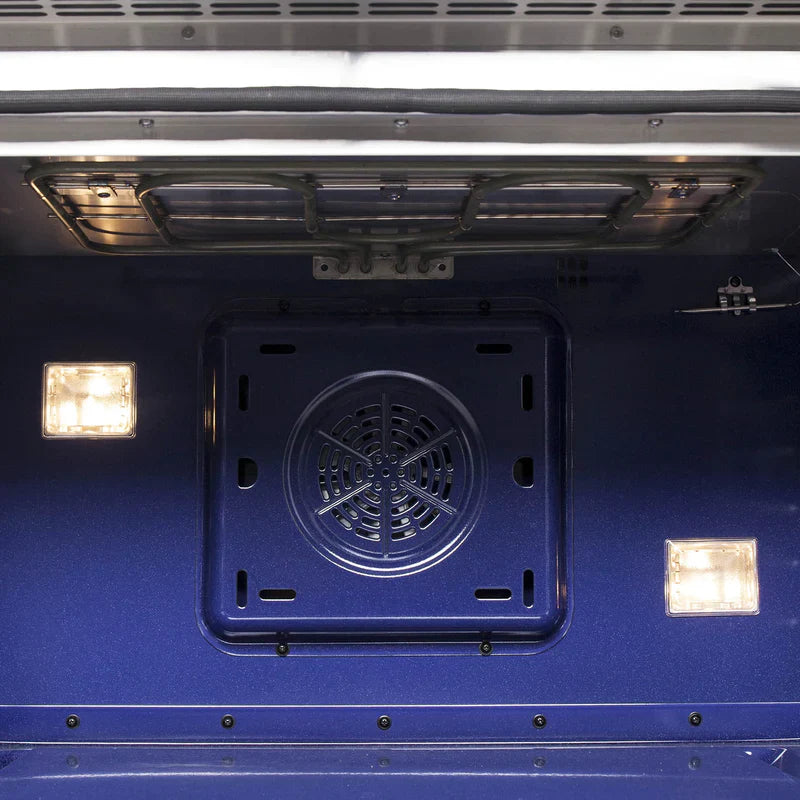 • Durable Finish: The 36" oven features a 5.36 cu.ft. capacity with 6,300 Watt broil and bake output, blue enameled interior, 3 telescopic electroplated oven racks and 2 halogen lights. A 3 layer glass oven door window, U-Tube auto-ignition and convection fan ensures even temperature distribution throughout the oven cavity. Includes Air Fryer Rack & Drip Pan.