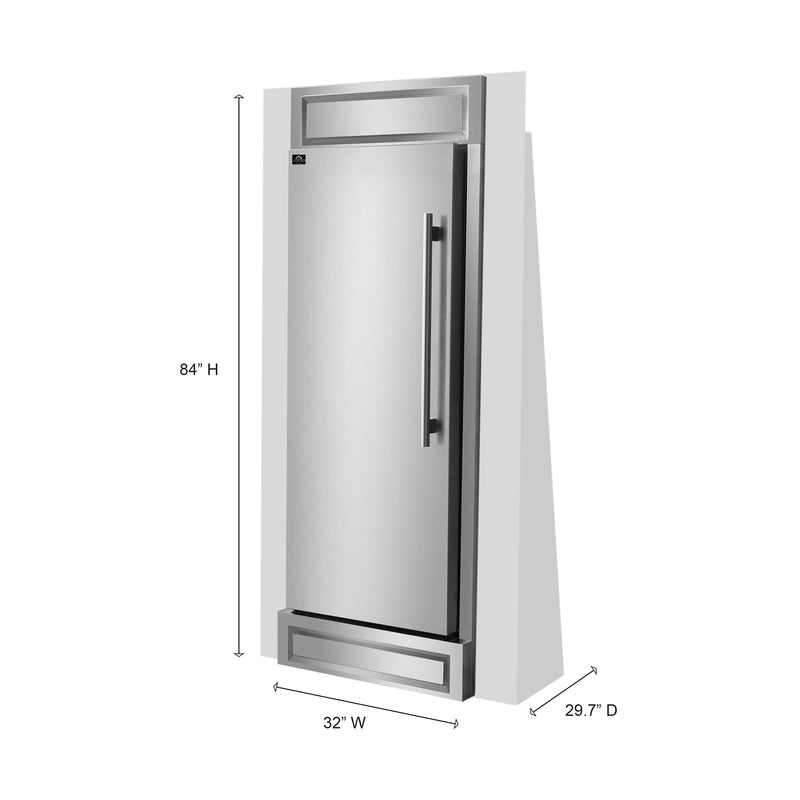 Introducing the FORNO Maderno 32" Wide 13.6 cu.ft. Left Swing Convertible Refrigerator/Freezer Built-in with Decorative Grill Trim – a perfect fusion of style and convenience