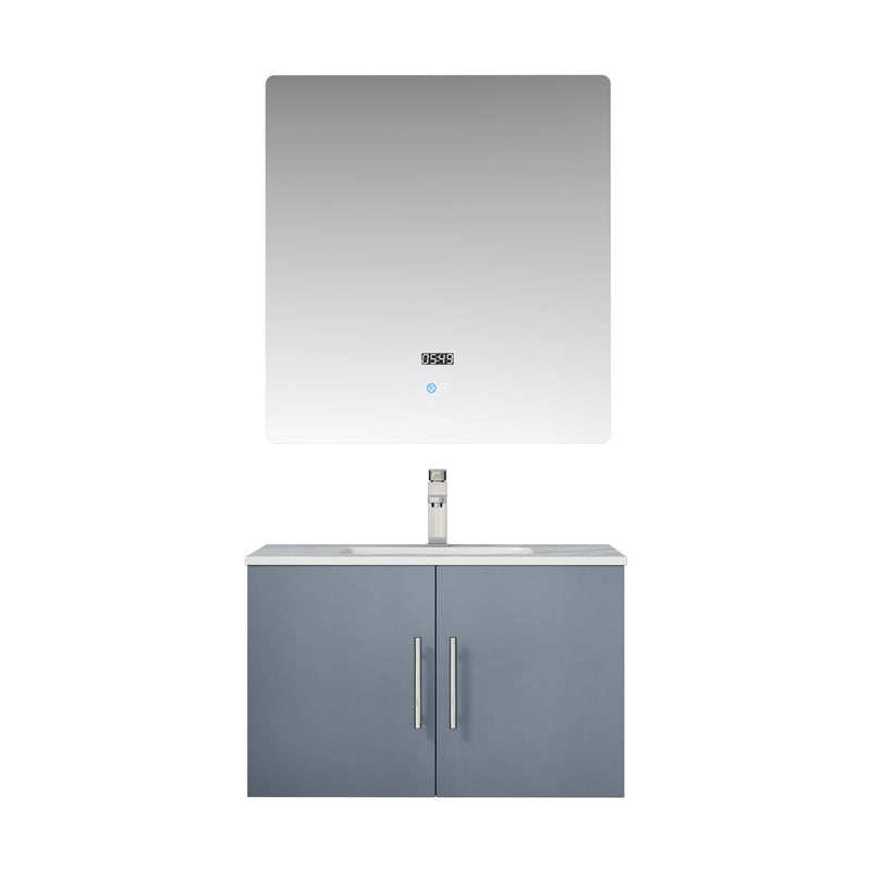 Lexora Geneva 30" Dark Grey Single Vanity, White Carrara Marble Top, White Square Sink and 30" LED Mirror LG192230DBDSLM30