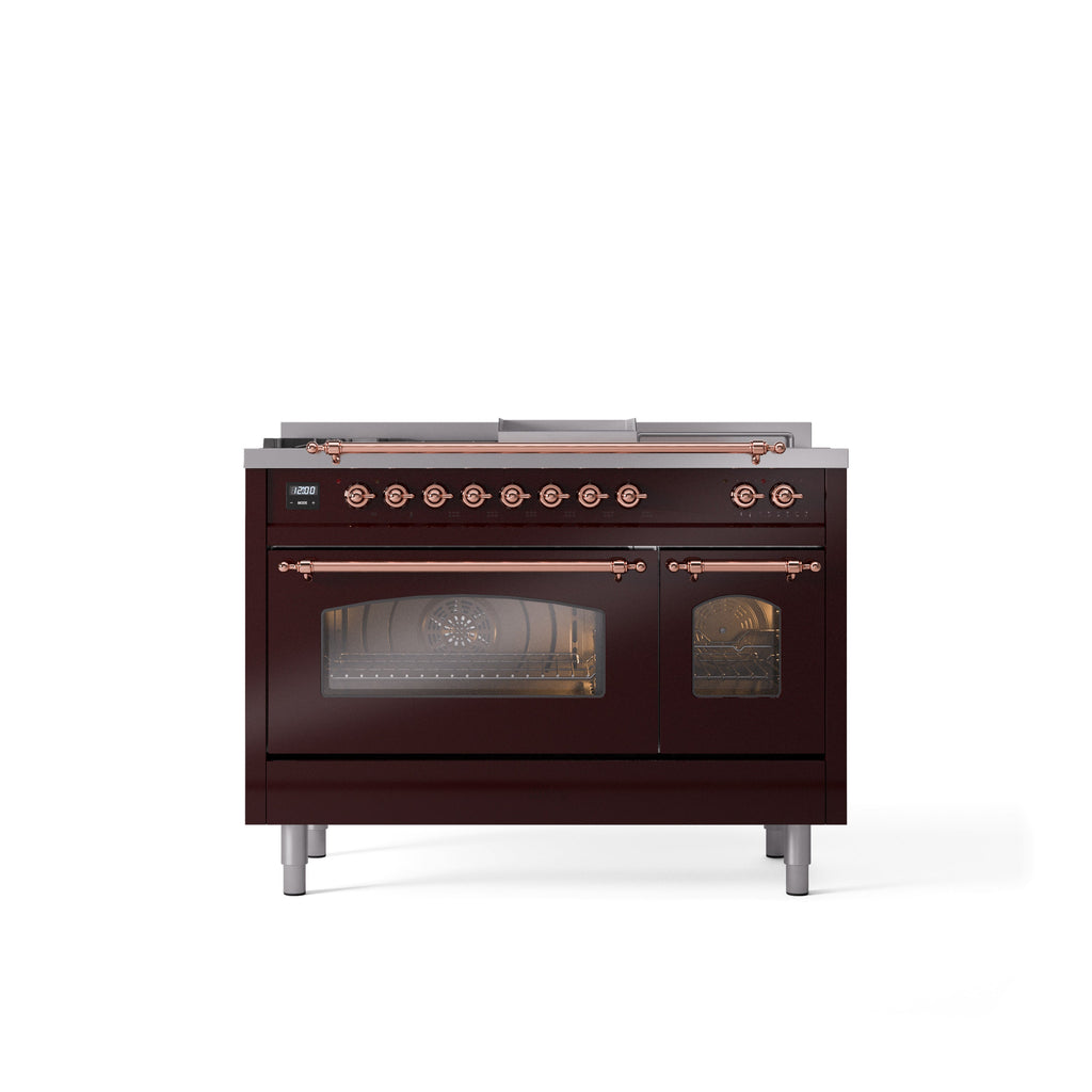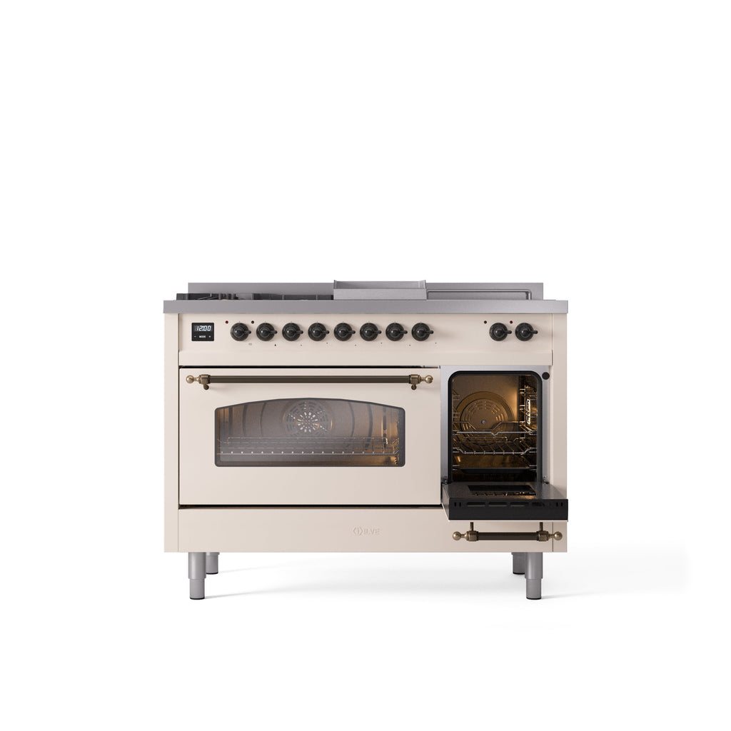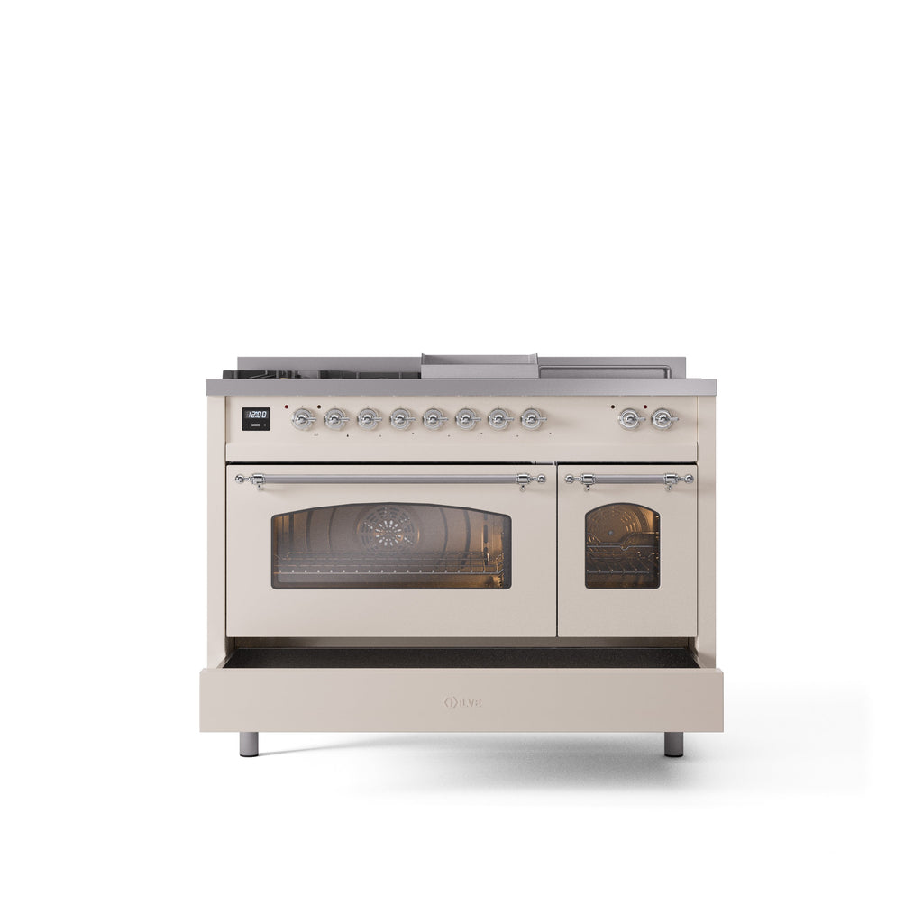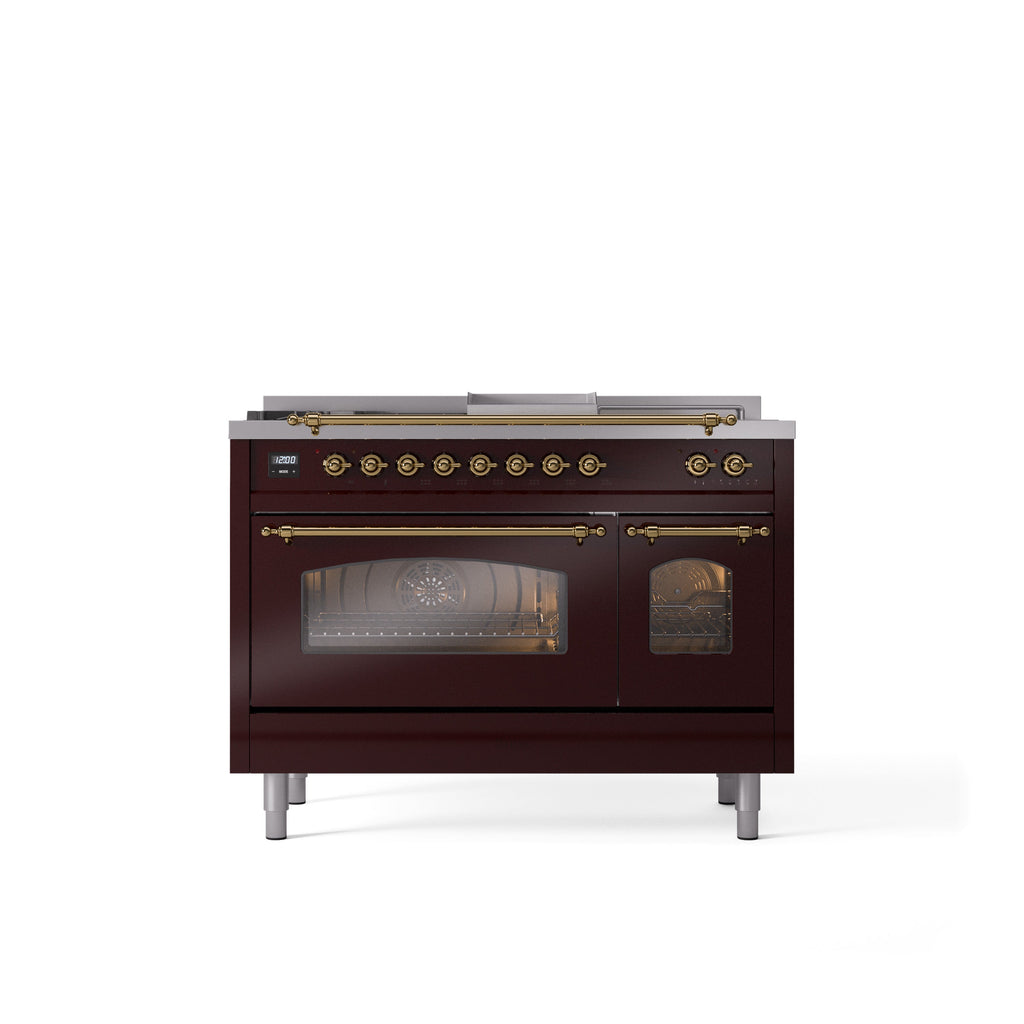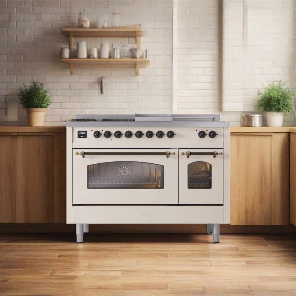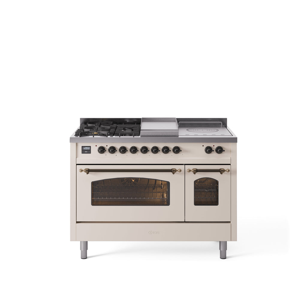 ILVE Nostalgie 48" Dual Fuel Range with 5 Sealed Burners Griddle French Top Triple Glass Door - UP48FSNMP