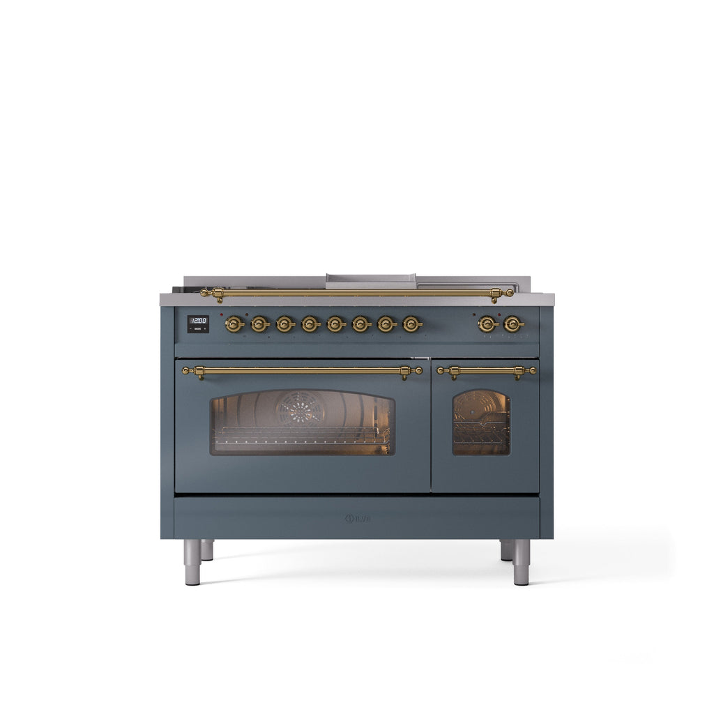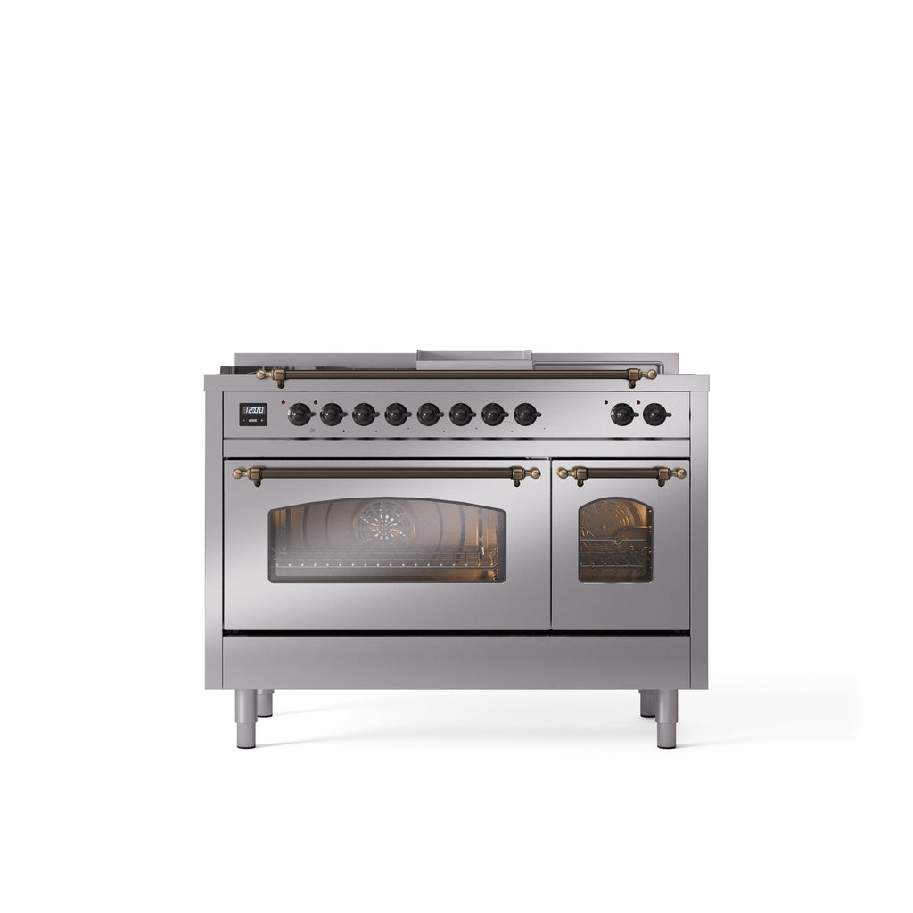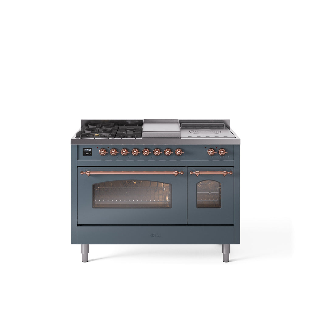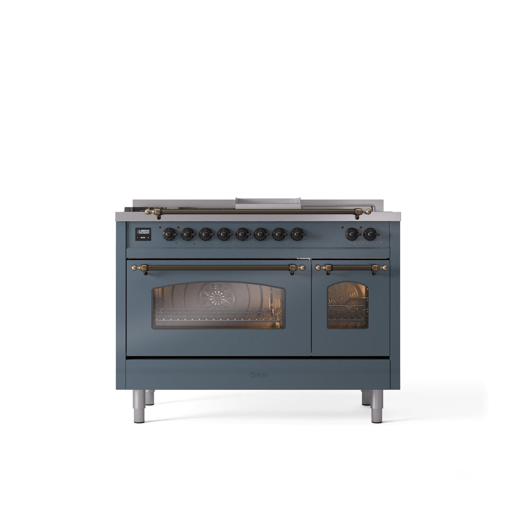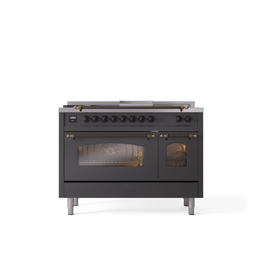 ILVE Nostalgie 48" Dual Fuel Range with 5 Sealed Burners Griddle French Top Triple Glass Door - UP48FSNMP
