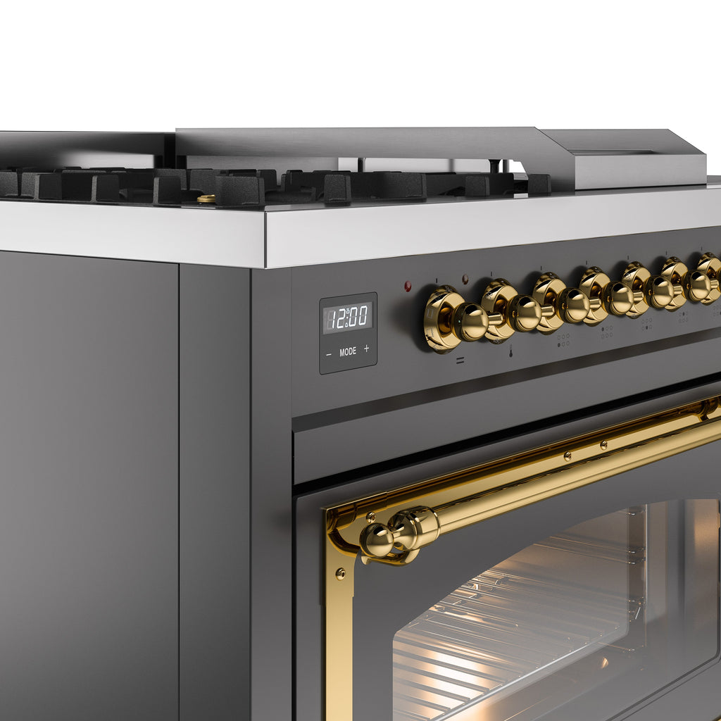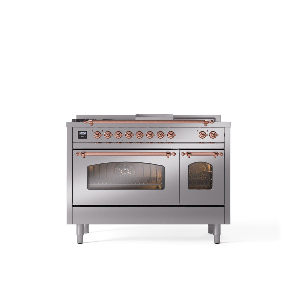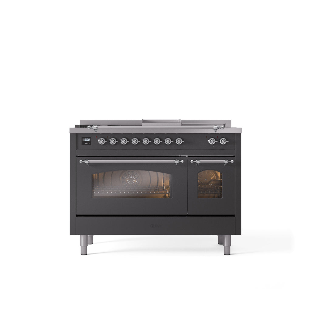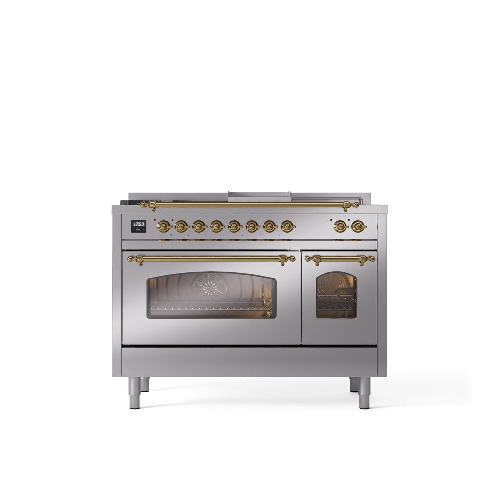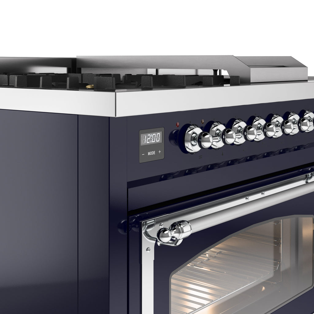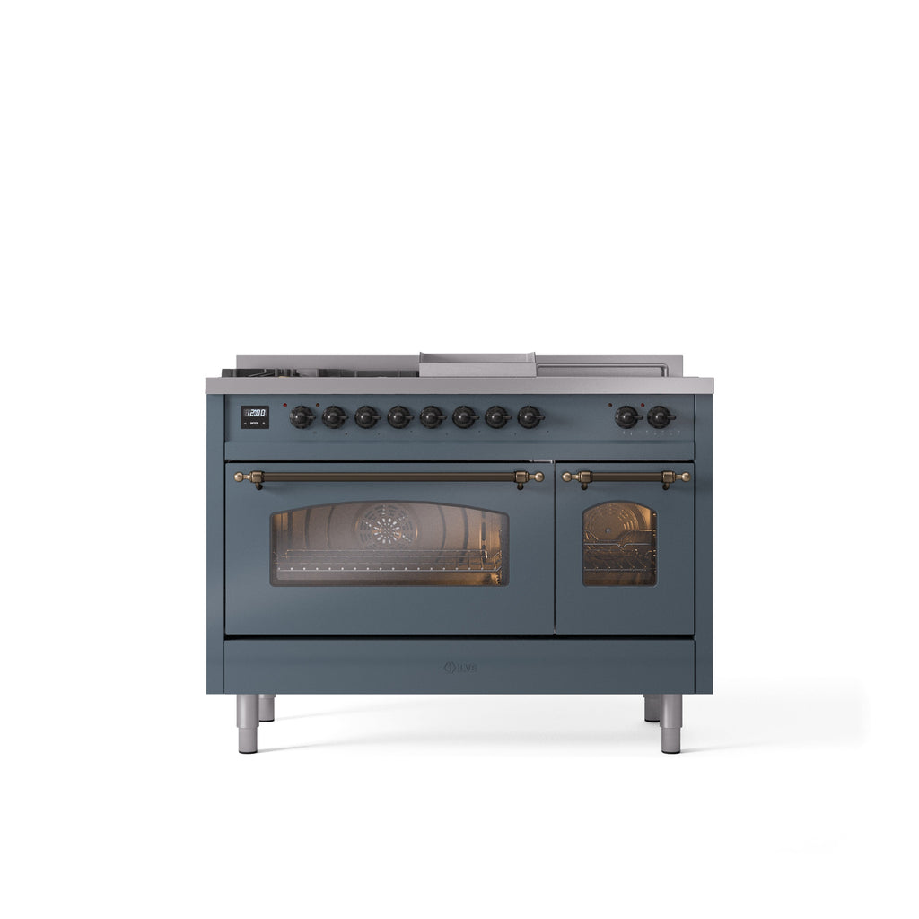 ILVE Nostalgie 48" Dual Fuel Range with 5 Sealed Burners Griddle French Top Triple Glass Door - UP48FSNMP