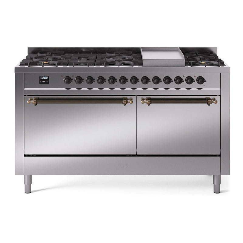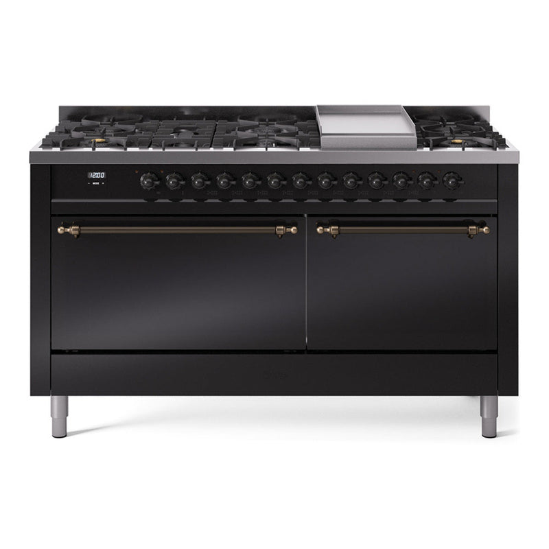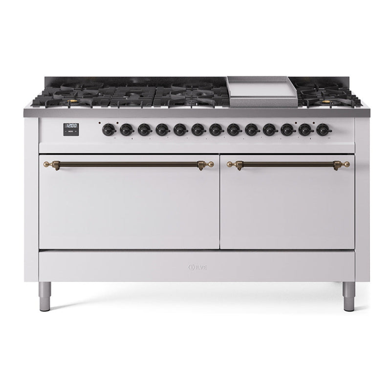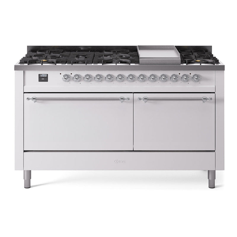 ILVE Nostalgie II 60" Dual Fuel Range with 9 Sealed Burners + Griddle Solid Door - UP60FQNMP