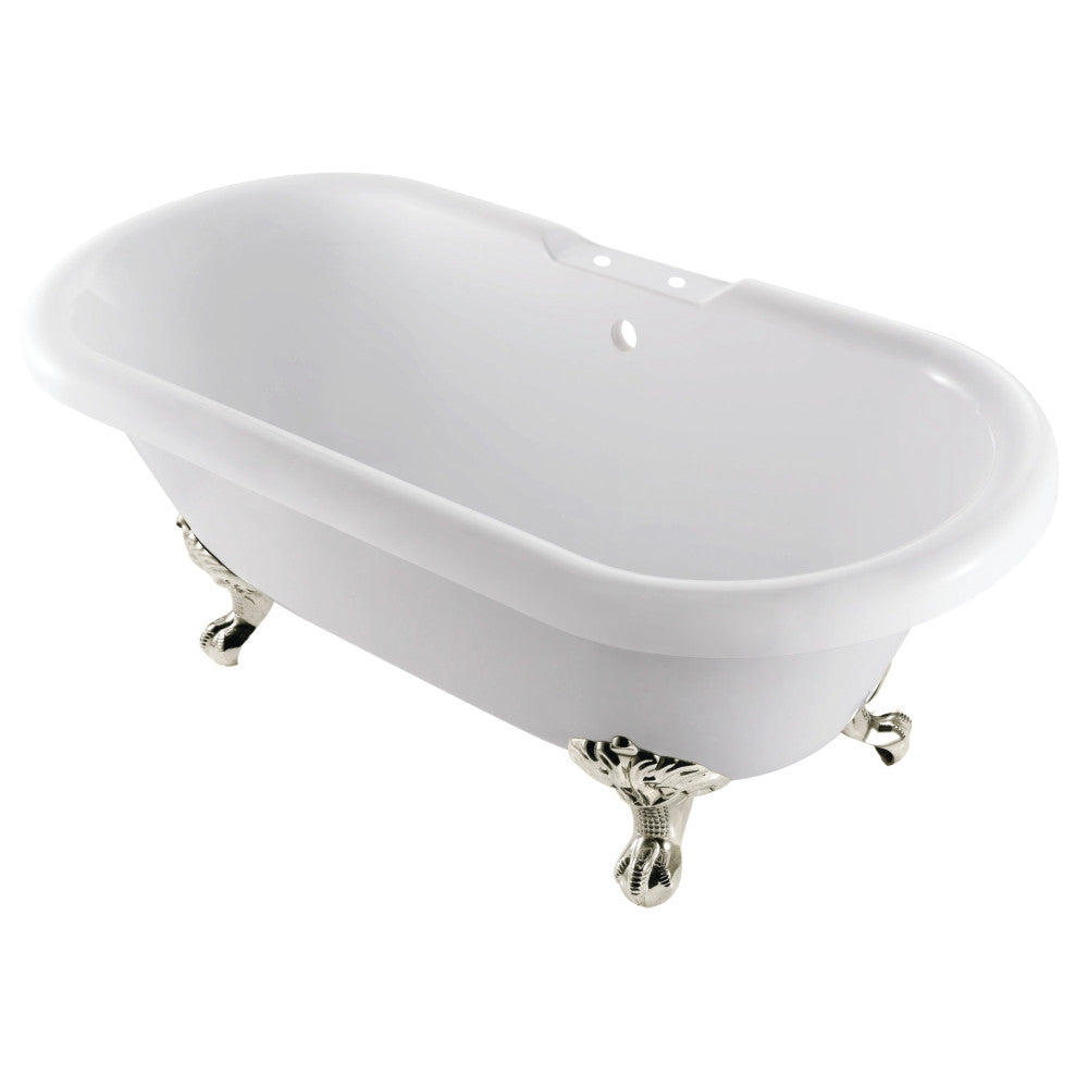 Kingston Brass Aqua Eden 67-Inch Acrylic Clawfoot Tub with 7-Inch Faucet Drillings, White/Polished Nickel VT7DS672924JNH6