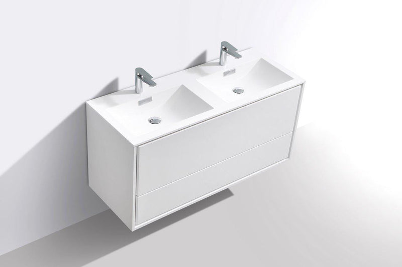 Kube Bath De Lusso 48 in. Double Sink Wall Mount Modern Bathroom Vanity - High Glossy White, DL48D-GW