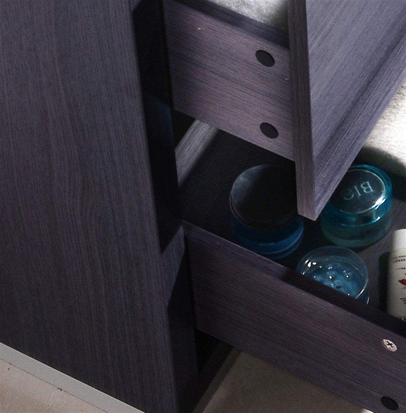 The Bliss is one of the most elegant modern Bathroom Vanities around. This 30 Inch model comes with a reinforced Acrylic sink, Marine Wood Veneer Constructed Console that is fully moisture and water proof, with high quality European DTC Hardware, that provides smooth push-open operation drawers.