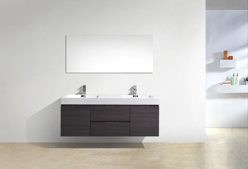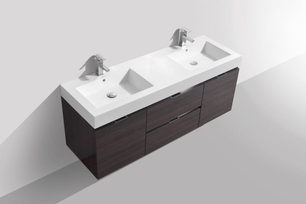 KubeBath Bliss 60 in. Double Sink Wall Mount Modern Bathroom Vanity - High Gloss Gray Oak, BSL60D-HGGO
