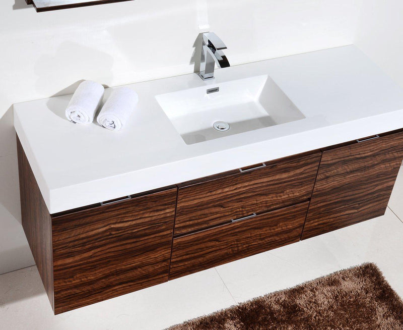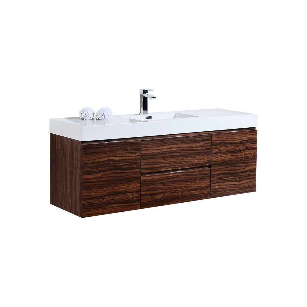KubeBath Bliss 60 in. Single Sink Wall Mount Modern Bathroom Vanity - Walnut, BSL60S-WNT