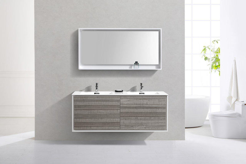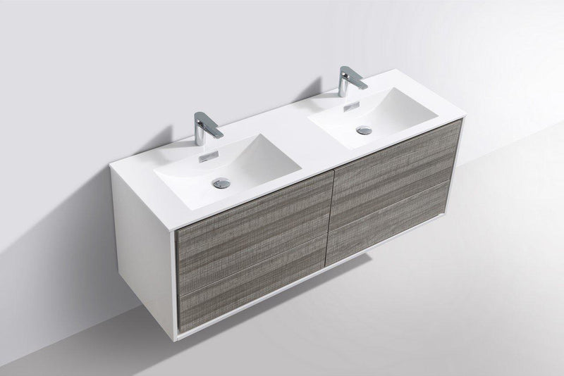 KubeBath De Lusso 60 in. Double Sink Wall Mount Modern Bathroom Vanity - Ash Gray, DL60D-HGASH