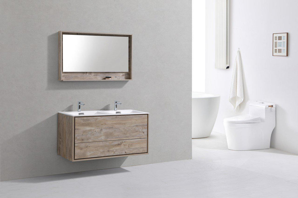 KubeBath DeLusso 48 in. Double Sink Wall Mount Modern Bathroom Vanity - Nature Wood, DL48D-NW