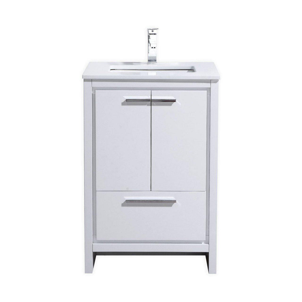 KubeBath Dolce 24 in. Modern Bathroom Vanity with White Quartz Counter Top - High Gloss White, AD624GW