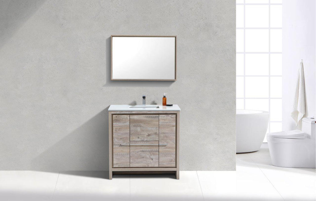 KubeBath Dolce 36 in. Modern Bathroom Vanity with White Quartz Counter Top - Nature Wood, AD636NW