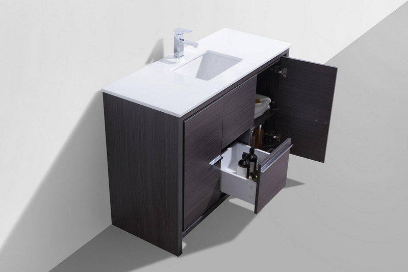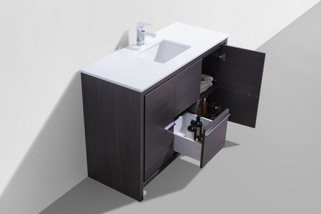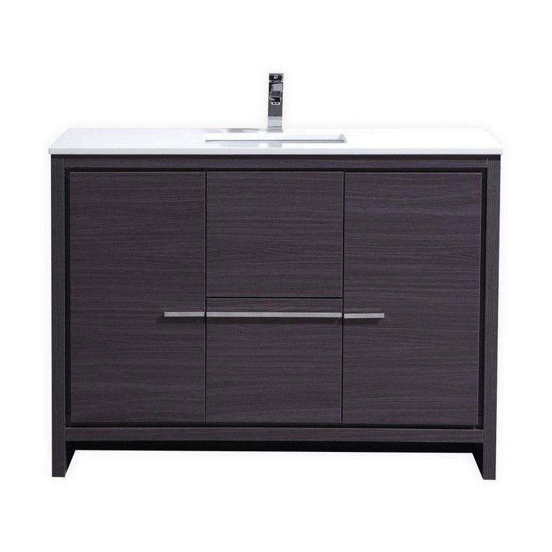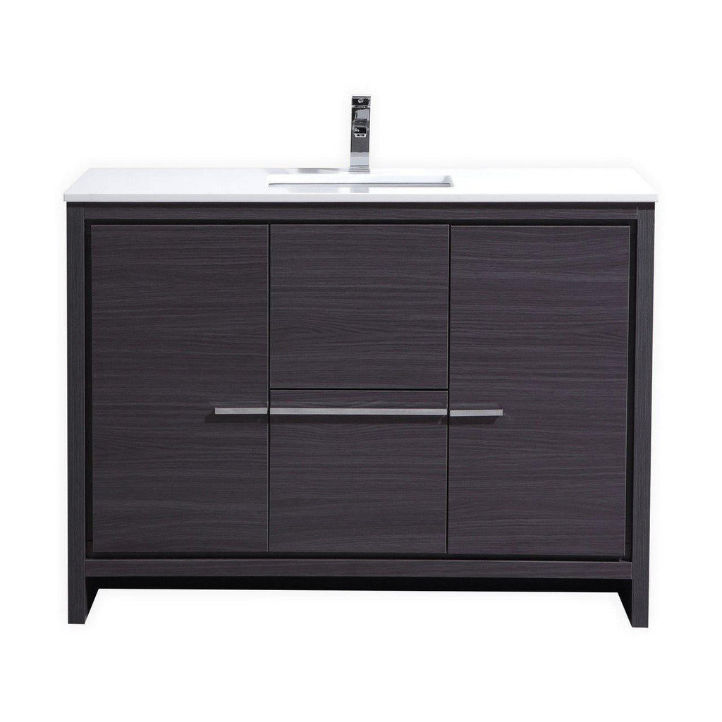 KubeBath Dolce 48 in. Modern Bathroom Vanity with White Quartz Counter Top - Gray Oak, AD648SWB