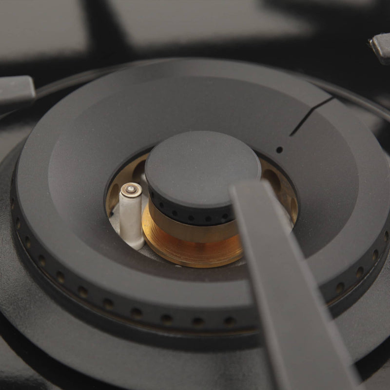 This high powered model was designed to function with Kucht’s Ignition, using an auto-reignition system that ignites every time with ease, and automatically reignites any time a flame burns out. The range top’s continuous grates covers the 4 burners and allows you to move your kitchen utensils safely and with ease. You can slide the heaviest pots and pans on the rails without even having to lift them.
