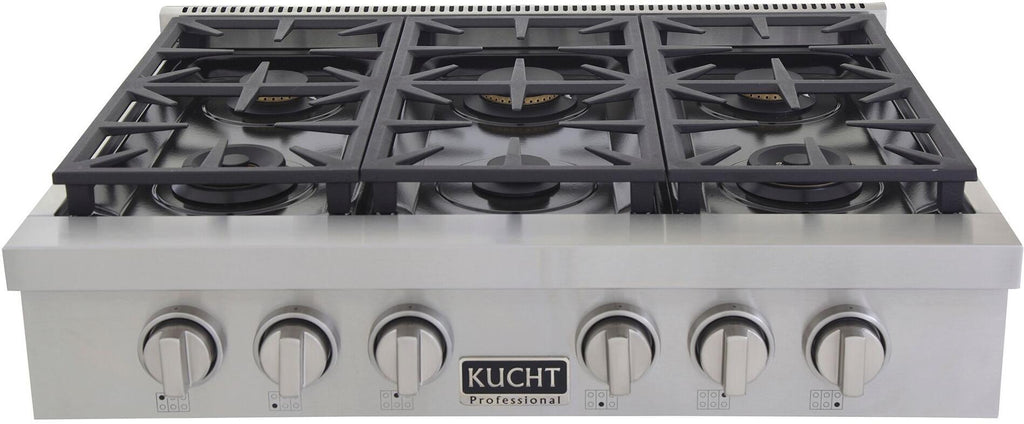 Kucht 36-Inch 6 Burner Gas Rangetop in Stainless Steel with Silver Accents (KFX369T-S)