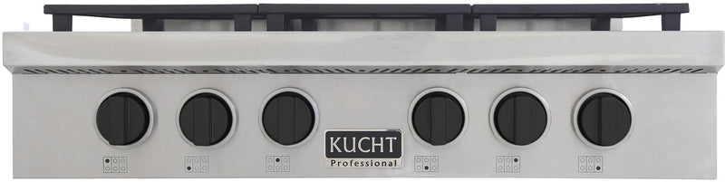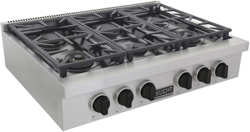 Kucht 36" 6 Burner Gas Rangetop in Stainless Steel with Toxedo Black Knob (KFX369T-K)