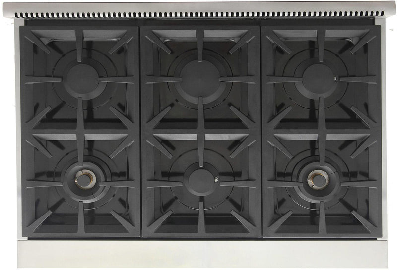 36" Professional Stainless Steel Rangetop by Kucht comes with 6 Sealed Burners and also features Black Porcelain Top, Heavy Duty Cast Iron Grates, Electronic Ignition and Auto-Reignition.