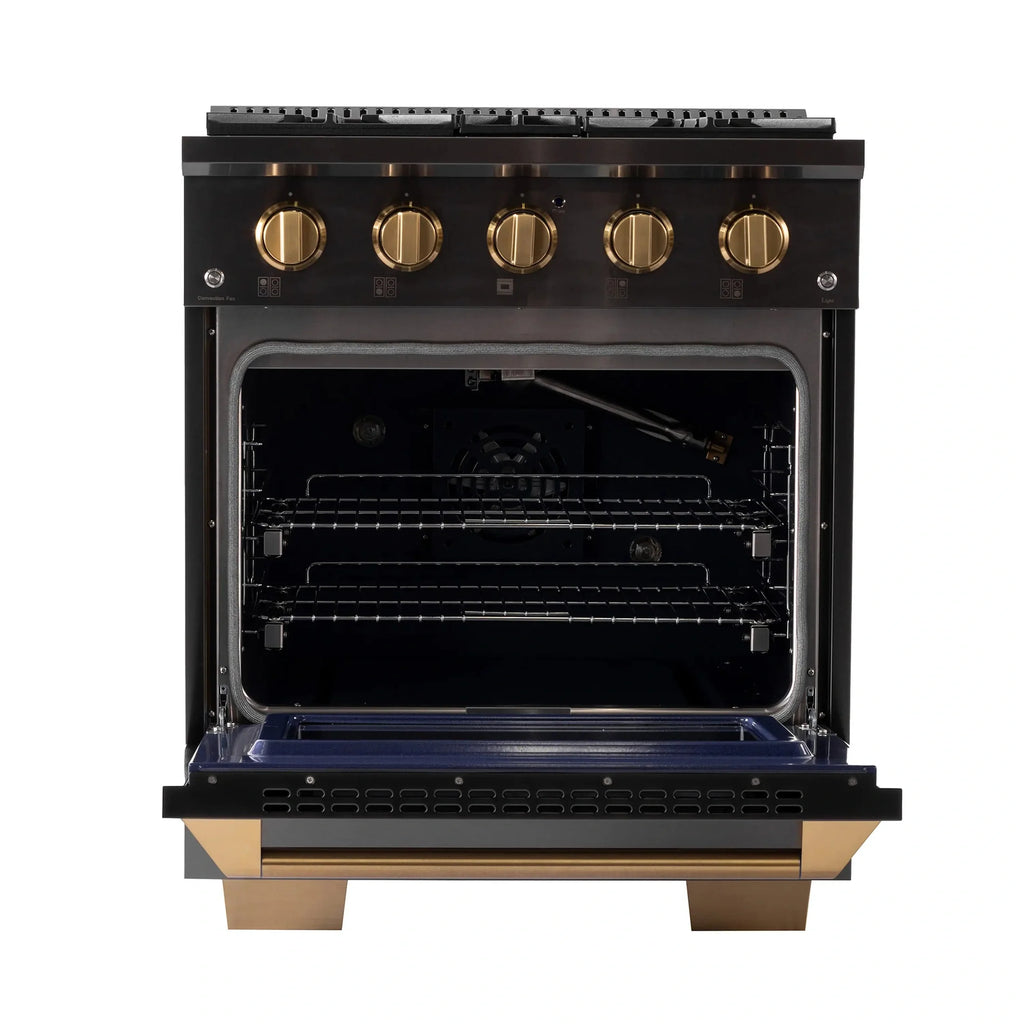 KUCHT Gemstone Professional 30-Inch 4.2 cu. ft. Natural Gas Range with Sealed Burners and Convection Oven in Titanium Stainless Steel with Gold Accents (KEG303)