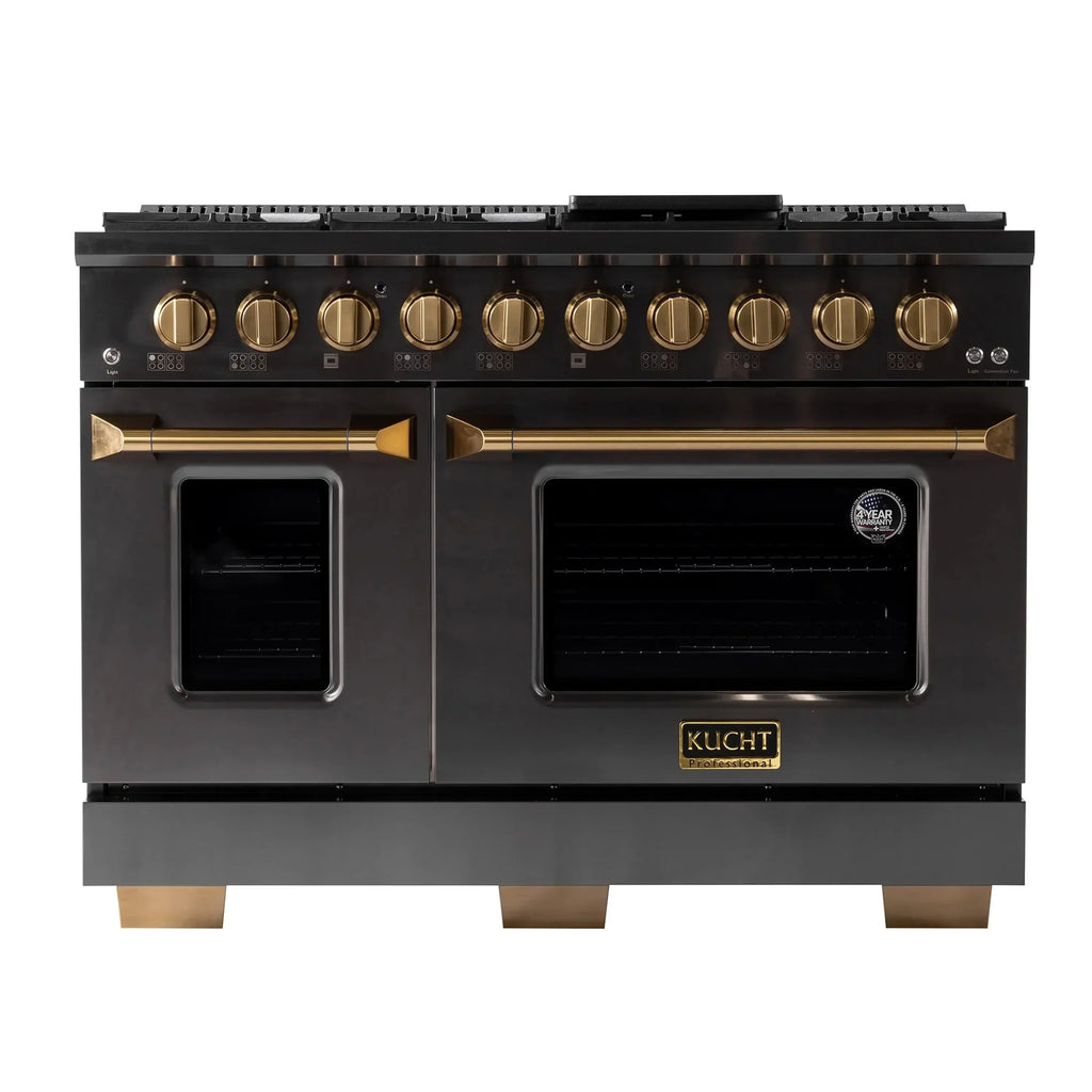 KUCHT Gemstone Professional 48-Inch 46.7 Cu. Ft. Dual Fuel Range for Propane Gas with Sealed Burners and Convection Oven in Titanium Stainless Steel (KED484/LP)
