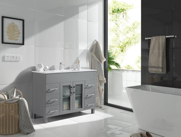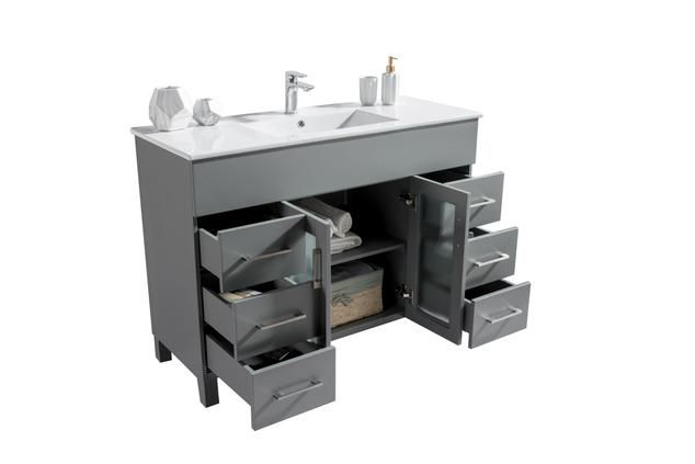 Laviva Nova 48" Grey Bathroom Vanity with White Ceramic Basin Countertop 31321529-48G-CB
