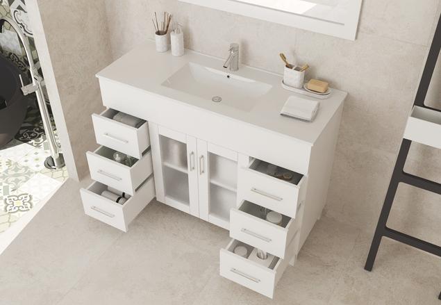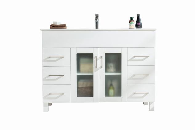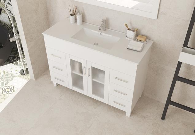 Laviva Nova 48" White Bathroom Vanity with White Ceramic Basin Countertop 31321529-48W-CB