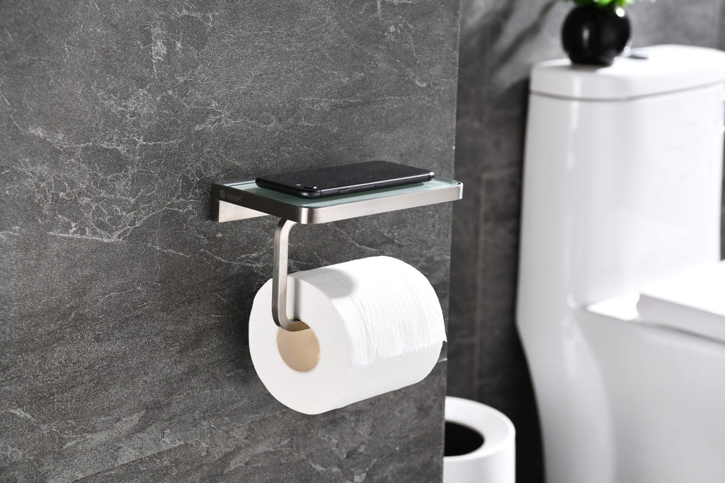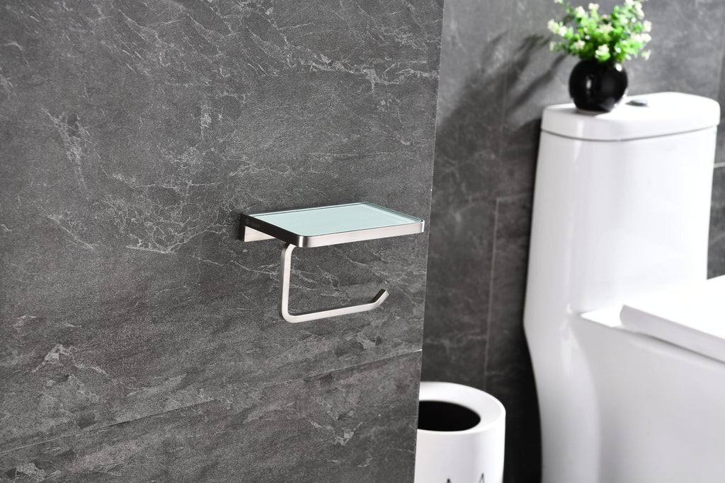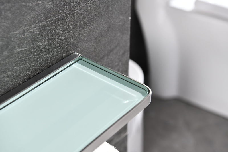 Lexora Bagno Bianca Stainless Steel White Glass Shelf w/ Toilet Paper Holder - Brushed Nickel LSP18152BN-WG