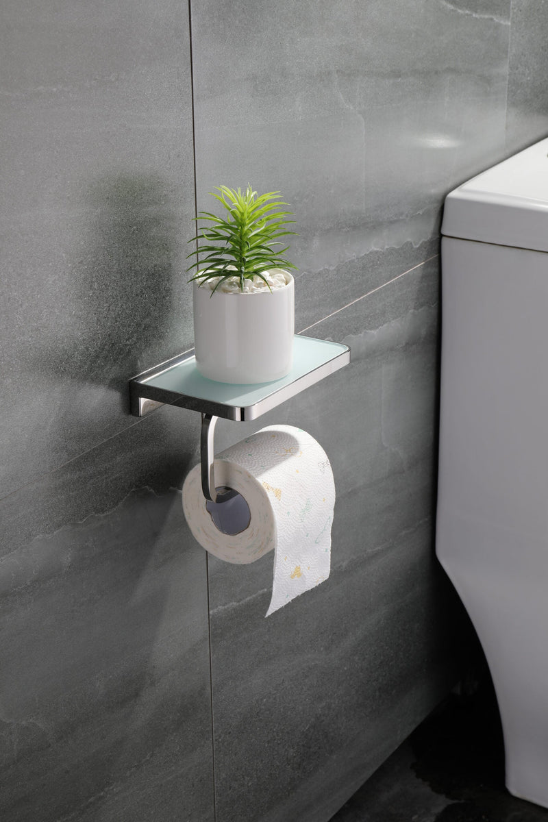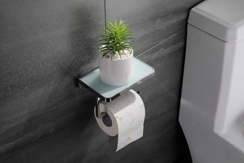 Lexora Bagno Bianca Stainless Steel White Glass Shelf w/ Toilet Paper Holder - Chrome LSP18152PC-WG