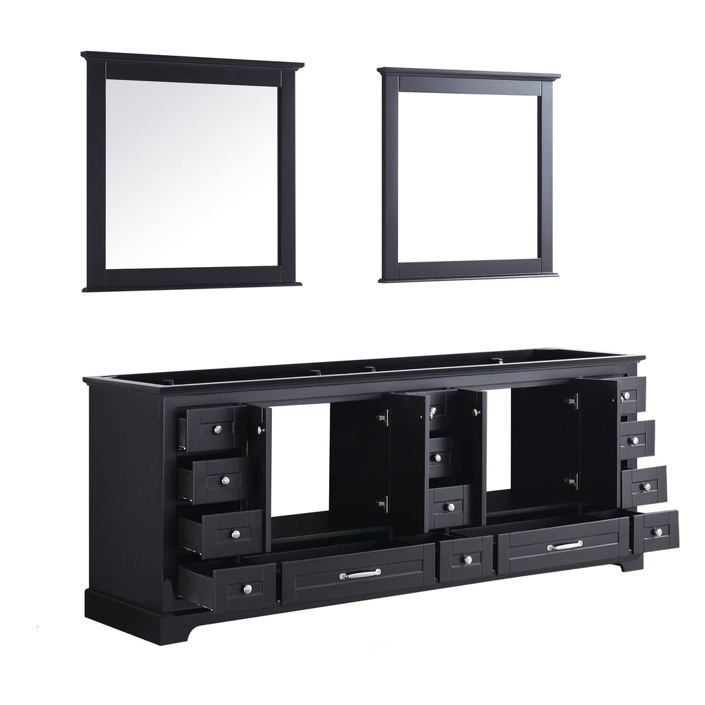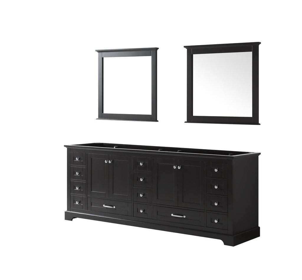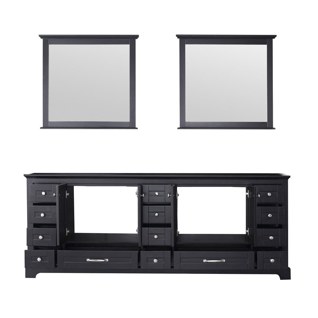 Lexora Dukes 84" Espresso Double Vanity, no Top and 34" Mirrors LD342284DG00M34