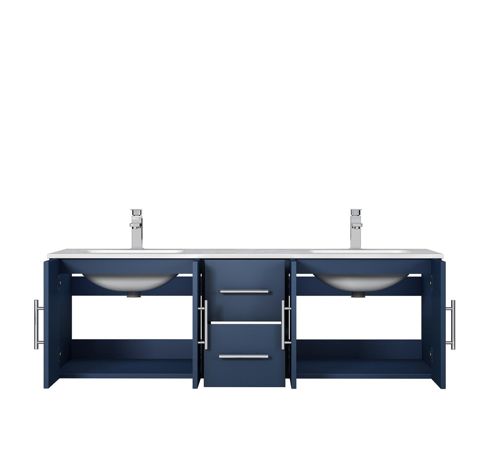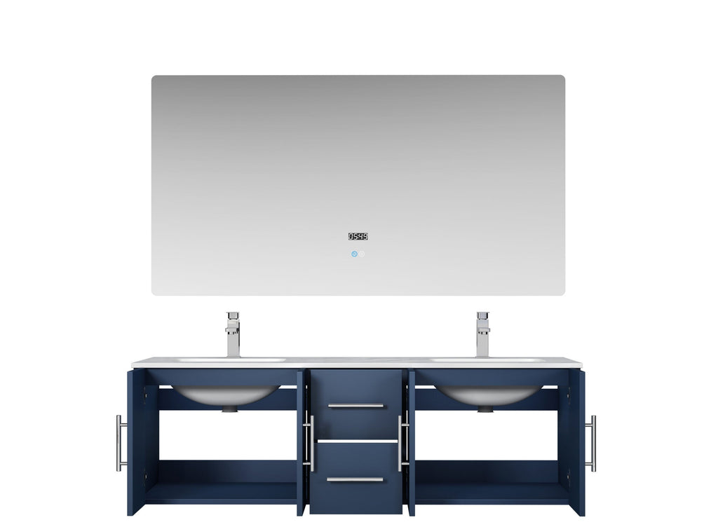 When mounted on the wall, the Geneva vanity leaves ample space beneath for additional storage—ideal for bathrooms with limited space. Also available in other colors, you can easily match this vanity to any bathroom décor. And, with two undermount sinks and a with premium LED mirror(s), this piece is all you need to give your bathroom a total makeover.