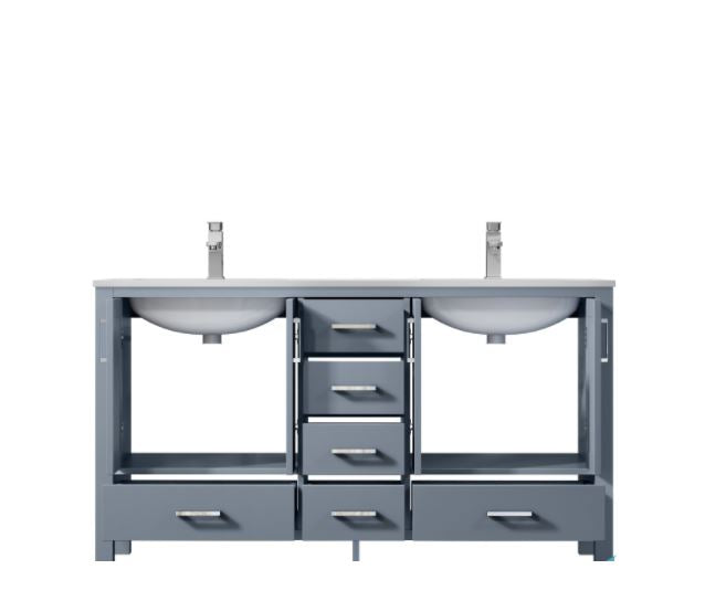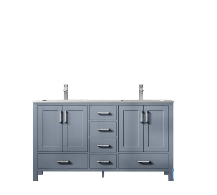Lexora Jacques 60" Dark Grey Double Vanity, White Carrara Marble Top, White Square Sinks and no Mirror LJ342260DBDS000